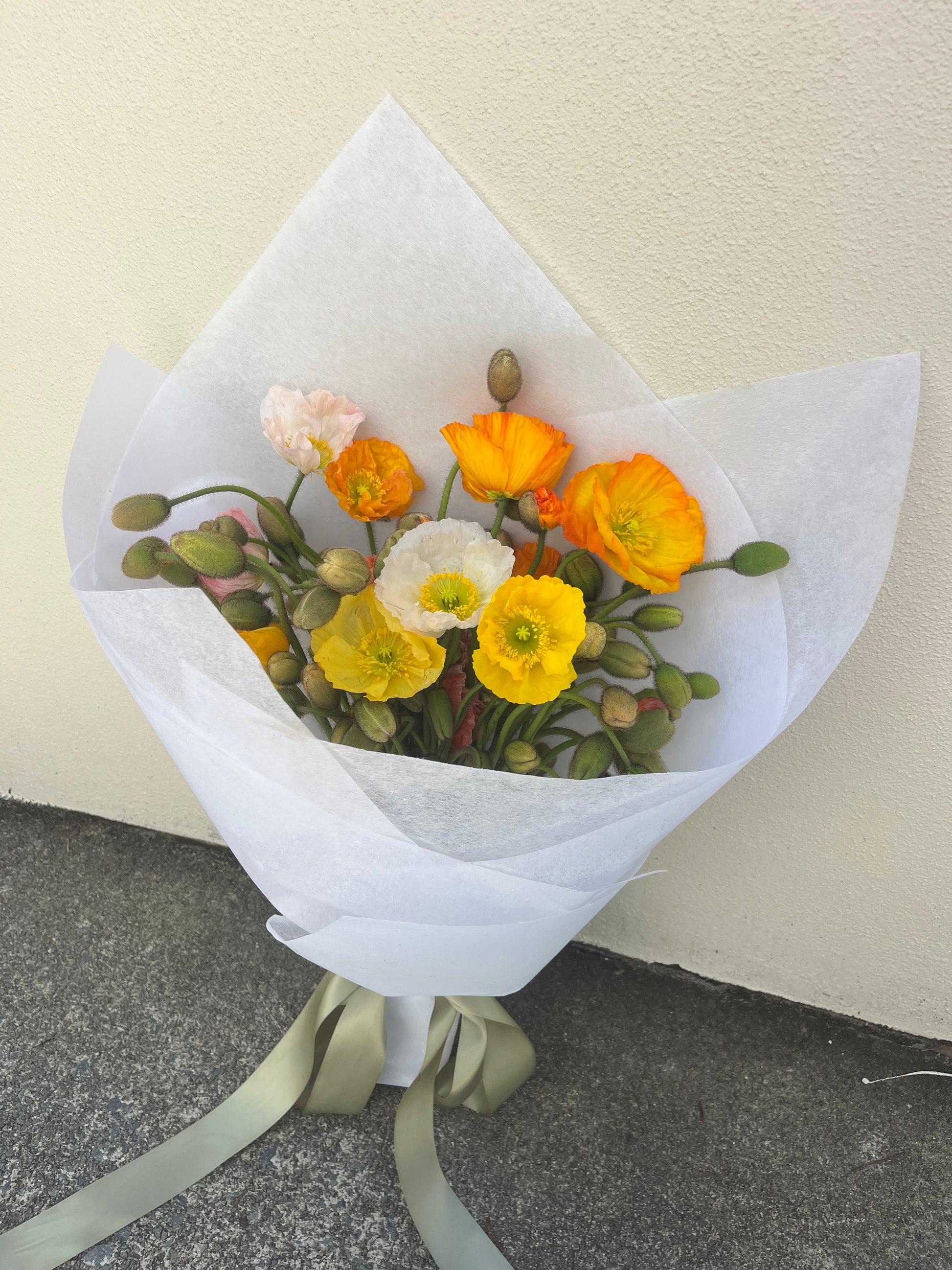 A beautiful bunch of Poppies, locally grown in the Lockyer Valley, sent as a mix of buds and open blooms.