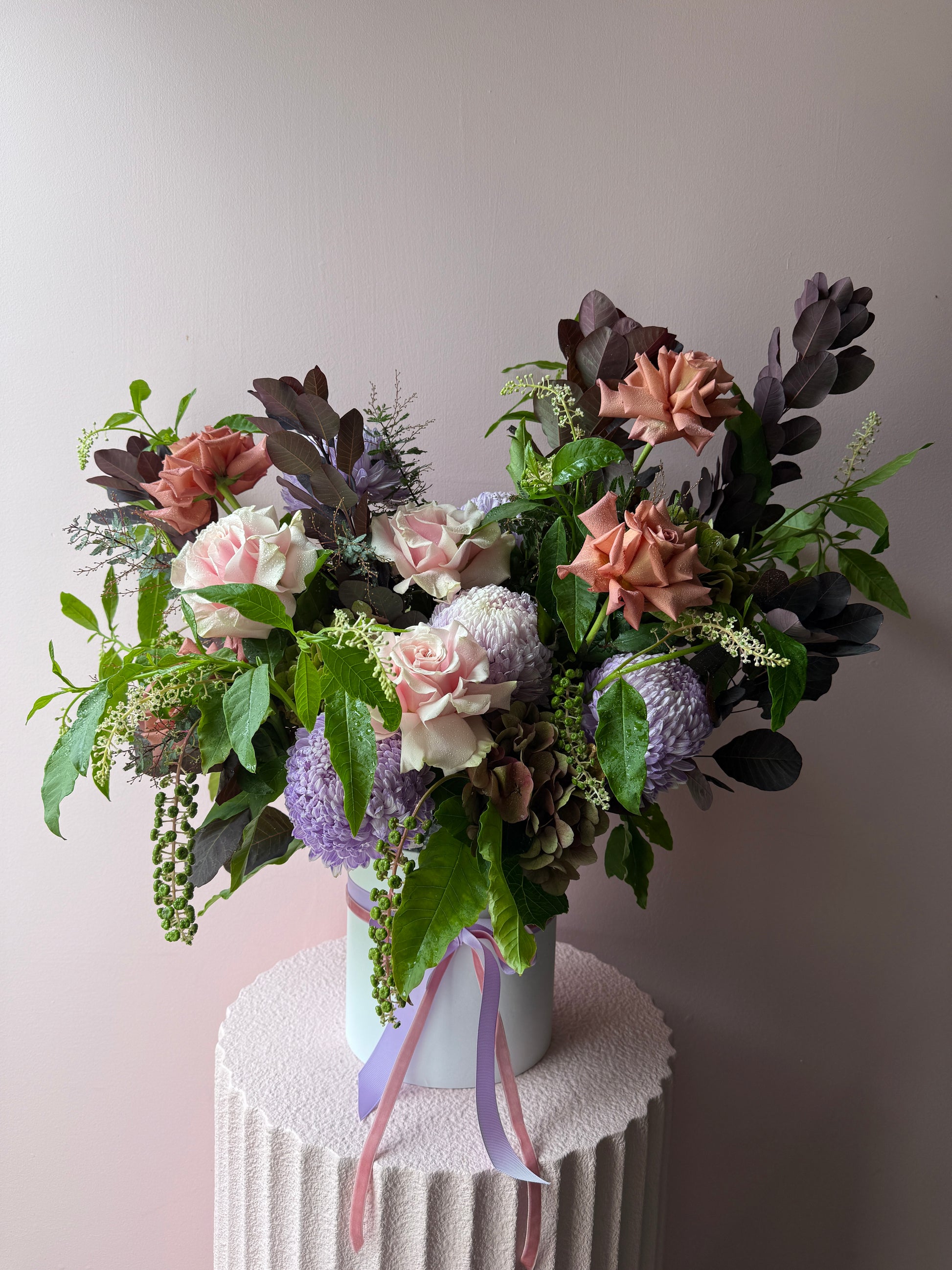 Thoughtfully designed for moments when ease matters most, The Boxed is a beautiful gesture without the fuss. Presented in a self-contained water source, this arrangement is perfect for hospital deliveries, aged care, offices, or anywhere a vase or wrapped bouquet simply isn’t practical.