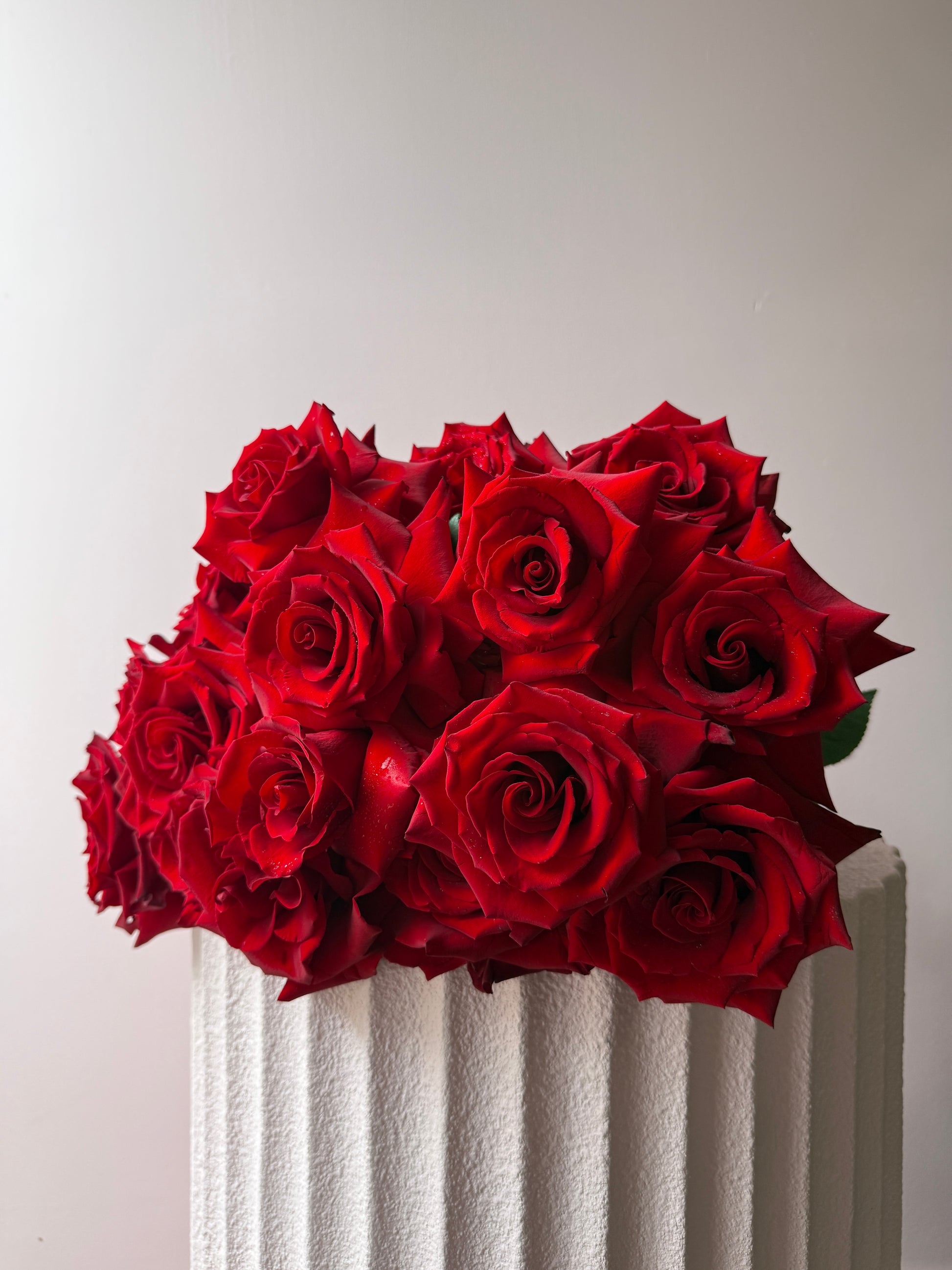 An abundant display of premium fresh red roses, known for their deep colour and velvety petals. Classic, bold, and beautifully presented—perfect for moments that deserve something special.