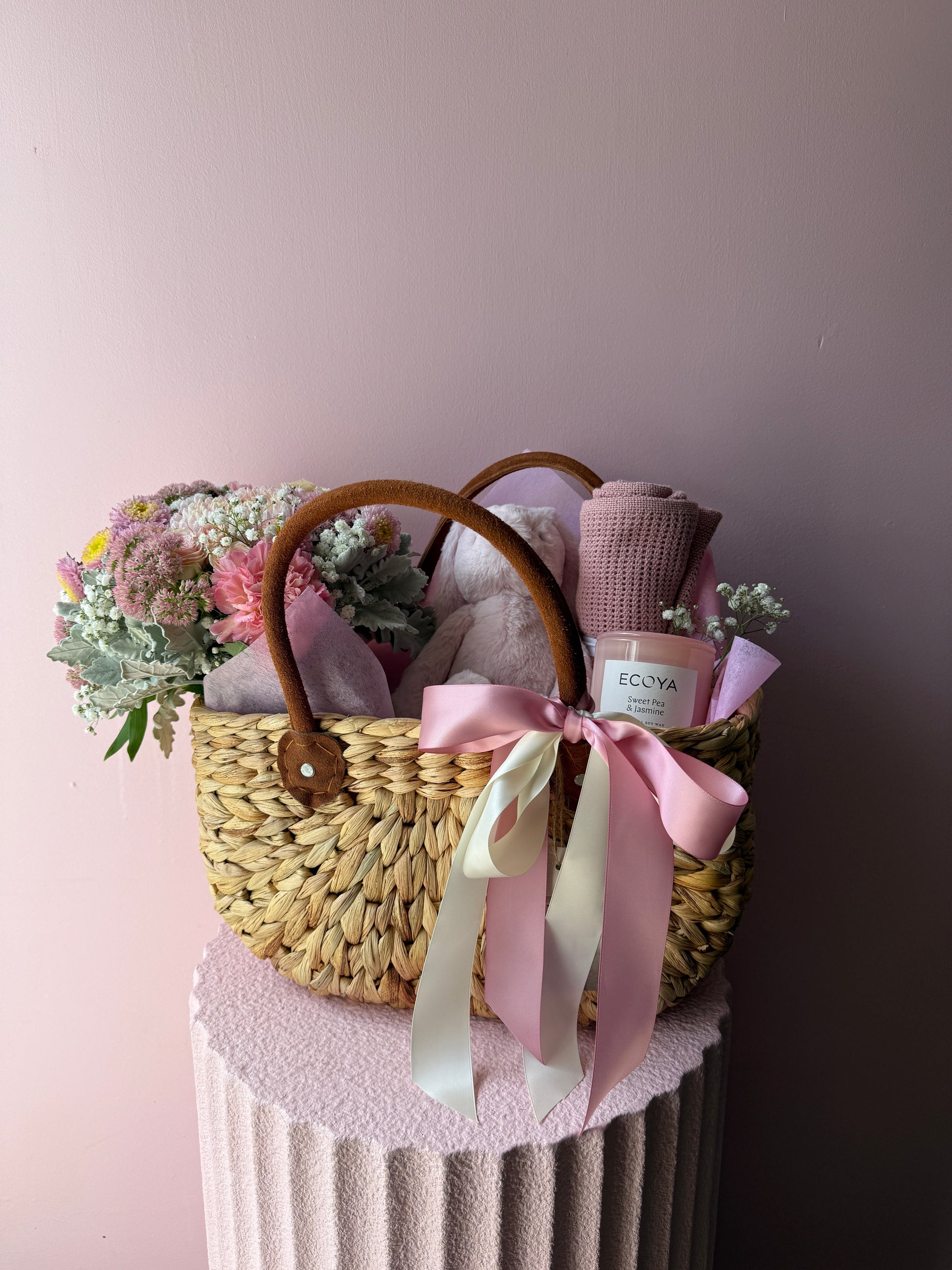 Our Welcome to the World Basket is beautifully presented in one of our signature Robert Gordon market baskets — a keepsake long after the blooms have been enjoyed.